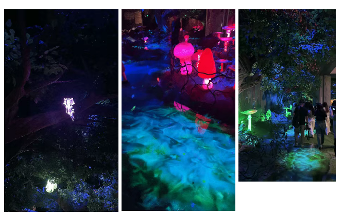步入三楼沉浸空间,瞬间坠入魔法药草宇宙:雾气氤氲中,数十种草药精灵在18棵发光巨树间翩跹,叶片脉动如心跳,千年古方镌刻其上,仿佛生命在悄然呼吸。光影与仿生科技交织,演绎出独属于中医药的灵性之美。