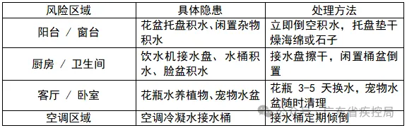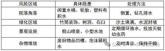 需及时清理雨后积水,做好防蚊灭蚊工作