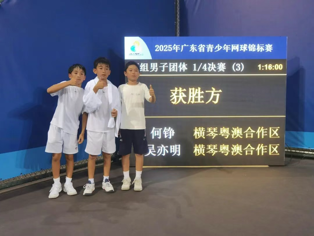 2025年广东省青少年网球锦标赛暨第十五届全国运动会网球测试赛在横琴火热进行中。鏖战一小时十六分钟,横琴小将挺进丁组男子团体1/4半决赛。
