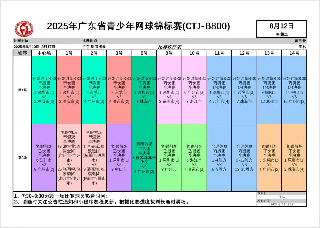 ※最终安排以现场裁判长统筹为准