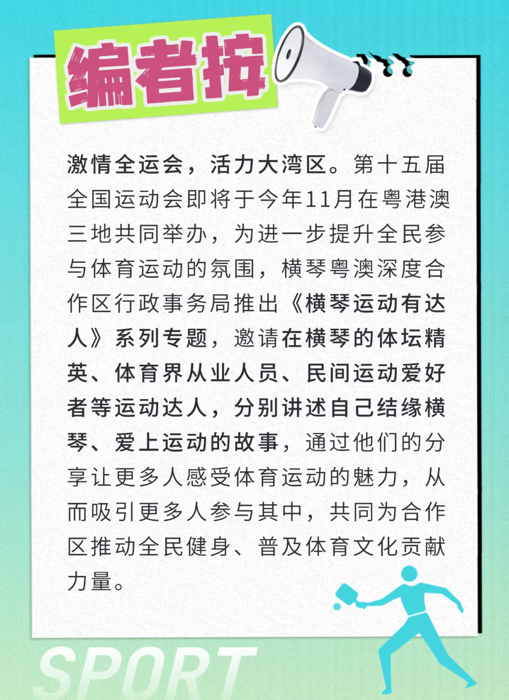 “我觉得不必担心这些不可把控的因素。体育项目有不同的发展期,唯有对体育运动真心的热爱,才能推动项目长远发展。”徐伟焕认为,匹克球打法简单、规则灵活,这一项新兴、有活力的运动与横琴开放、包容、多元的城市气质非常契合。每一位热爱匹克球的琴澳爱好者,都是匹克球在此长足发展的根基。