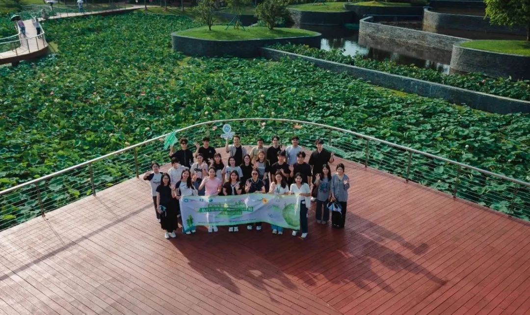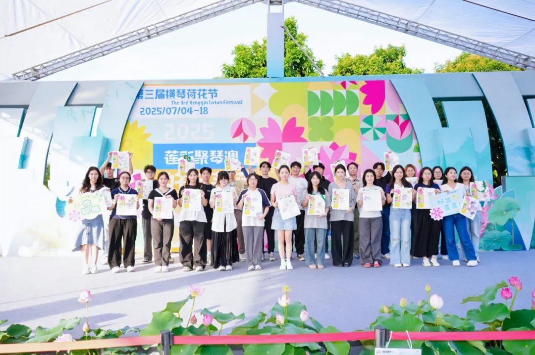 澳门青年们打卡了“横琴荷花节”,在荷塘边的田埂上开展手工拓印活动。