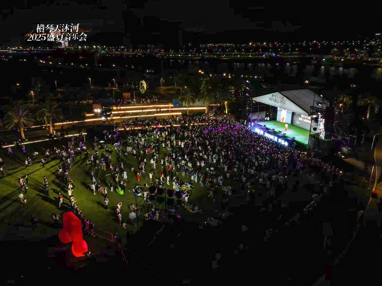 晚霞掠过天边和水面,灯光与星光交相辉映,在观众的欢呼和掌声中,横琴天沐河2025盛夏音乐会于日前顺利落下帷幕。