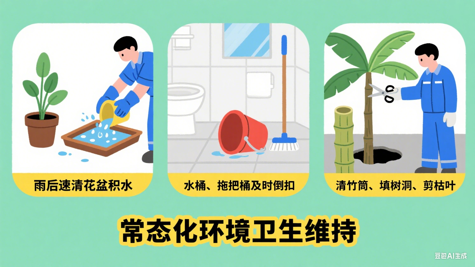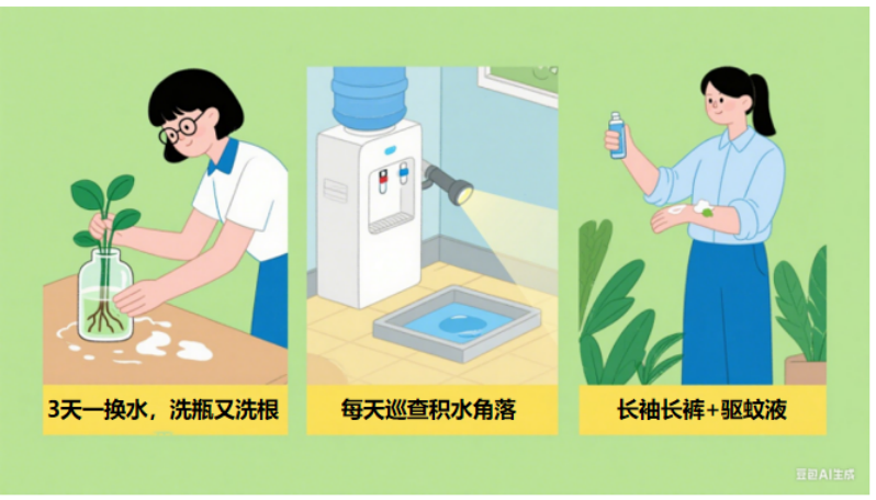 做好措施,让蚊虫远离我们,核心在于 “清积水、灭成蚊、防叮咬”。后勤天团出手,蚊子无处落脚!