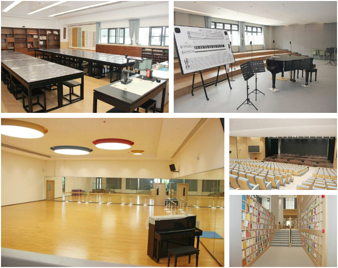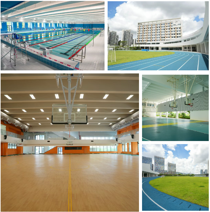 立学楼内设艺术教育区、学术交流中心与语音练习区。成玉楼则整合学科实验室、学生电视台、剧场等空间,成为展示学生才华的重要平台。运动区亮点突出,配备8道50米恒温泳池、室内球馆、健身房及开放式篮球场。此外,400米田径场、标准足球场及多处观景平台,为师生提供丰富的体育锻炼与交流场所。地下一层更打造了以“科技创造未来”为主题的创客空间,覆盖人工智能、航空航天等前沿领域。生活区俊德楼设有食堂等配套设施,致力营造舒心、安全的生活环境。