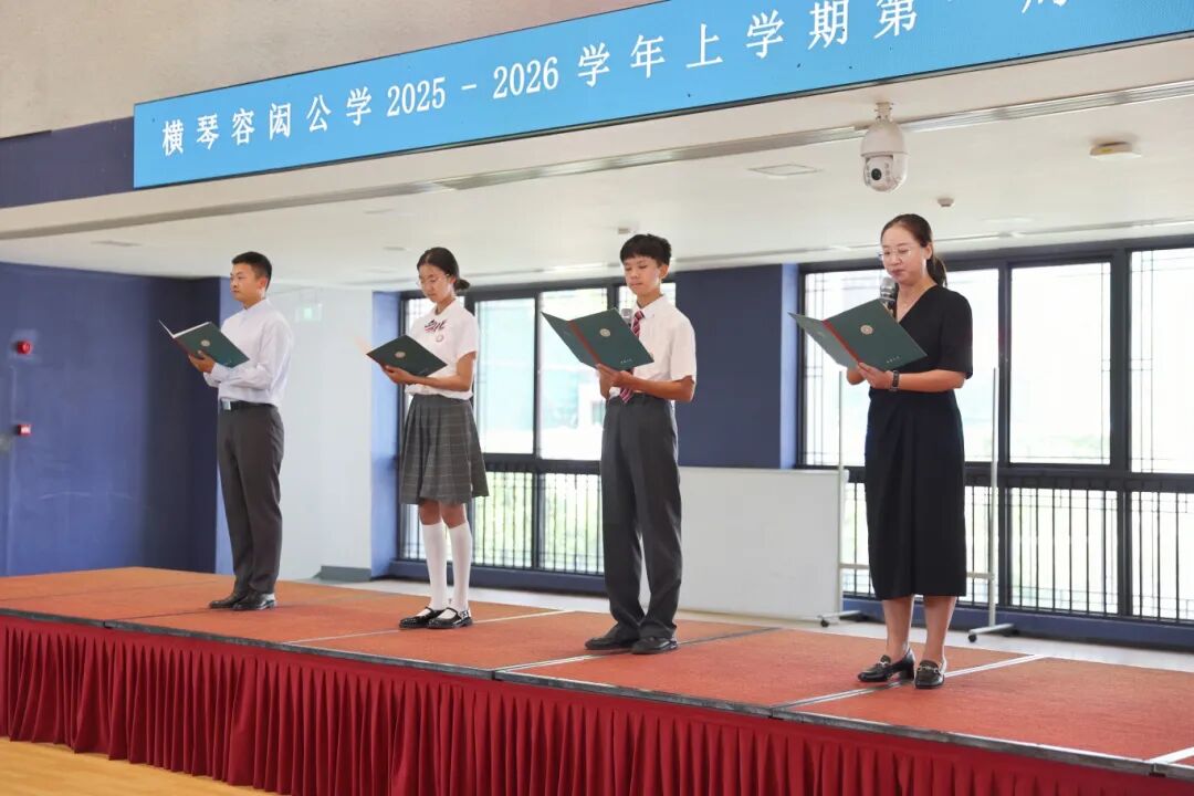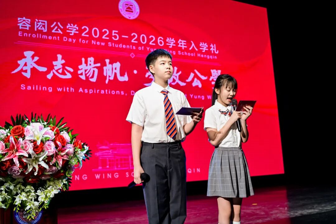 横琴华发容闳学校开展学礼仪、写“人”字、新生宣誓等传统环节,新生穿过成长之门,合唱校歌,将现场气氛推向高潮。