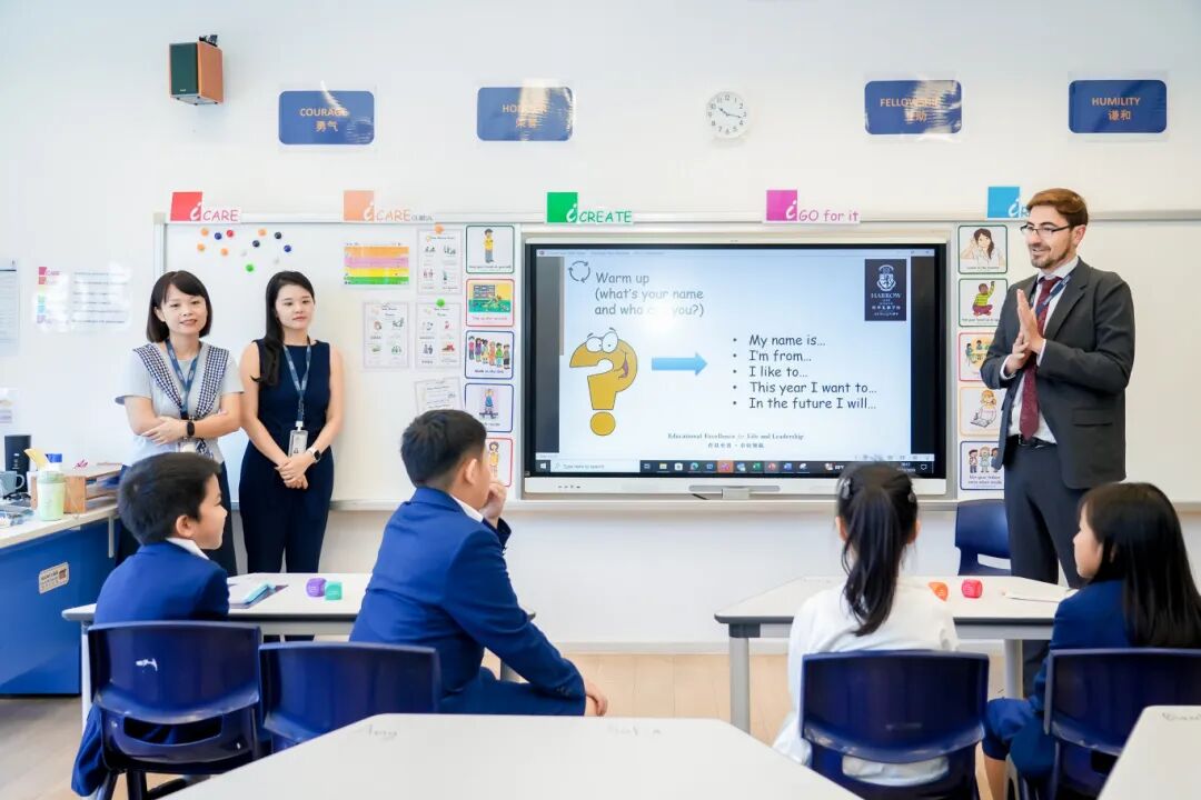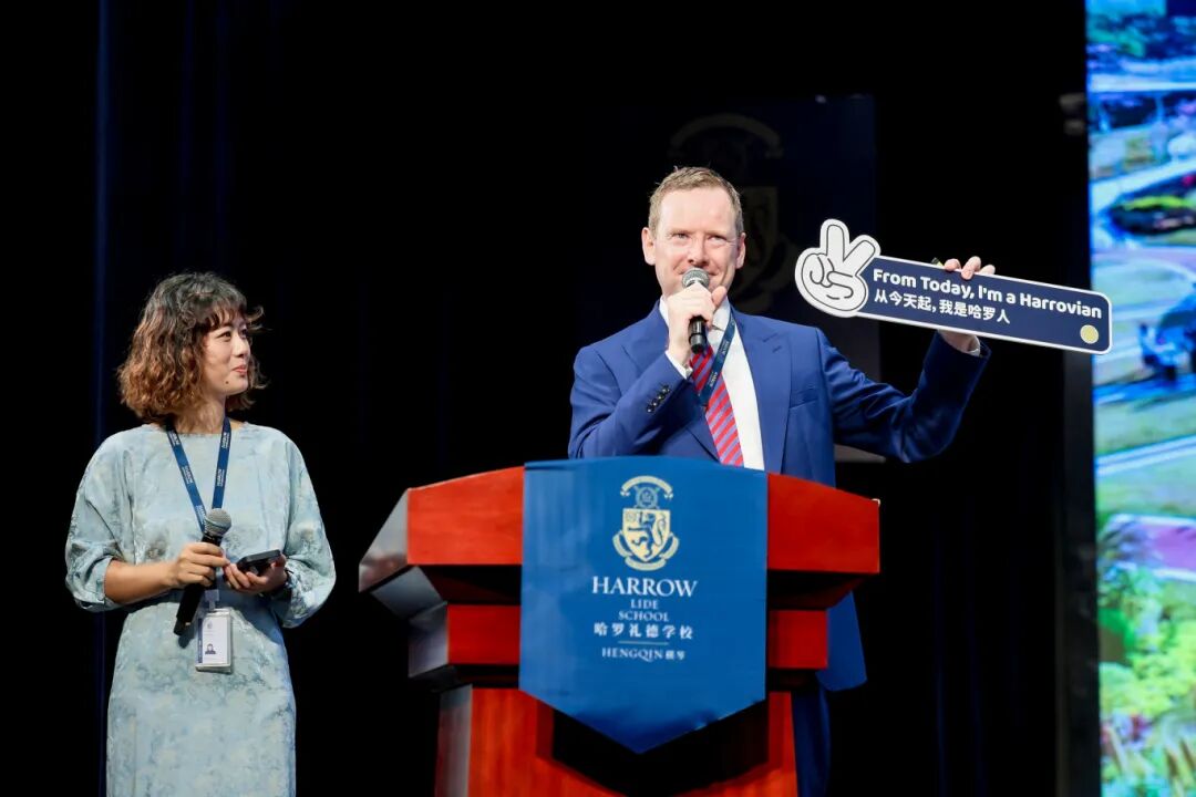 横琴哈罗礼德学校校长早早守候在校门,喜迎新同学加入哈罗大家庭,学校举办破冰活动帮助新生快速融入集体生活。