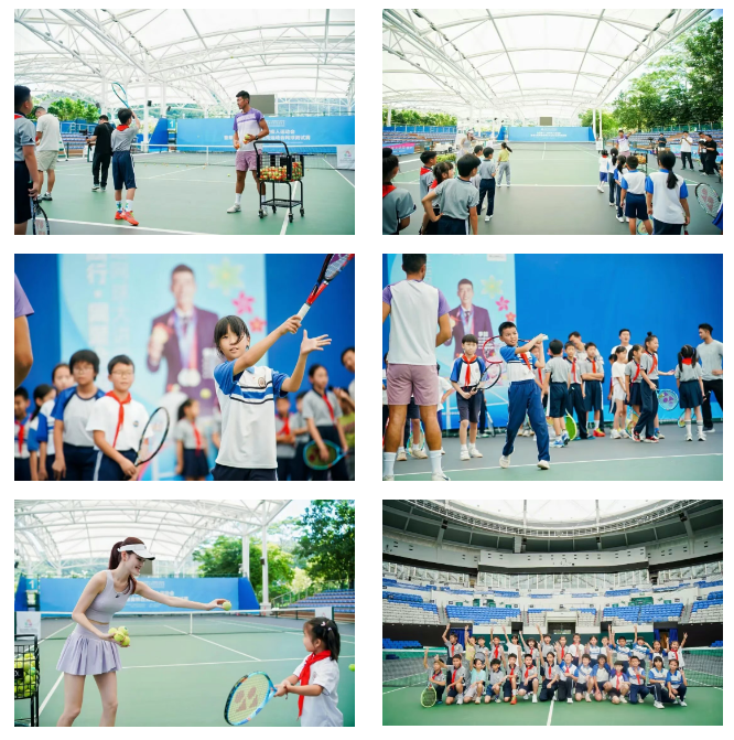 活动最后一站是网球体验课堂。拥有30余年网球从业经验的职业运动员李喆亲自上场指导,凭借其丰富的国际赛事经验和前沿技术理念,带领琴澳小学员们学习网球基础动作,从步伐移动到正反手挥拍,同学们学得认真、练得投入,场上不时传来欢声笑语。通过一起学习,琴澳两地学子不仅提升了球技,更结下了深厚友谊。