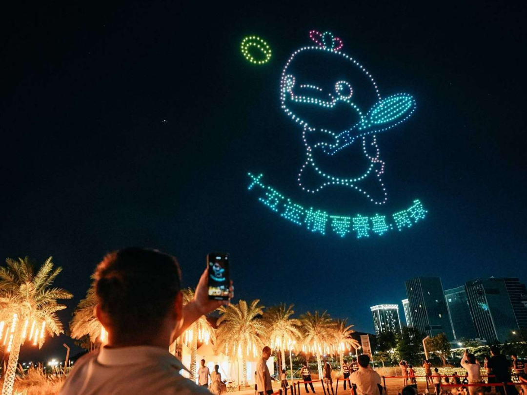 晚8时许,超700架无人机准时升空,在天上化作巨幅画布,编织出一幅流动画卷,相继排列出中秋、十五运吉祥物等造型,以及对国家繁荣昌盛的祝福,将现场气氛推向高潮。