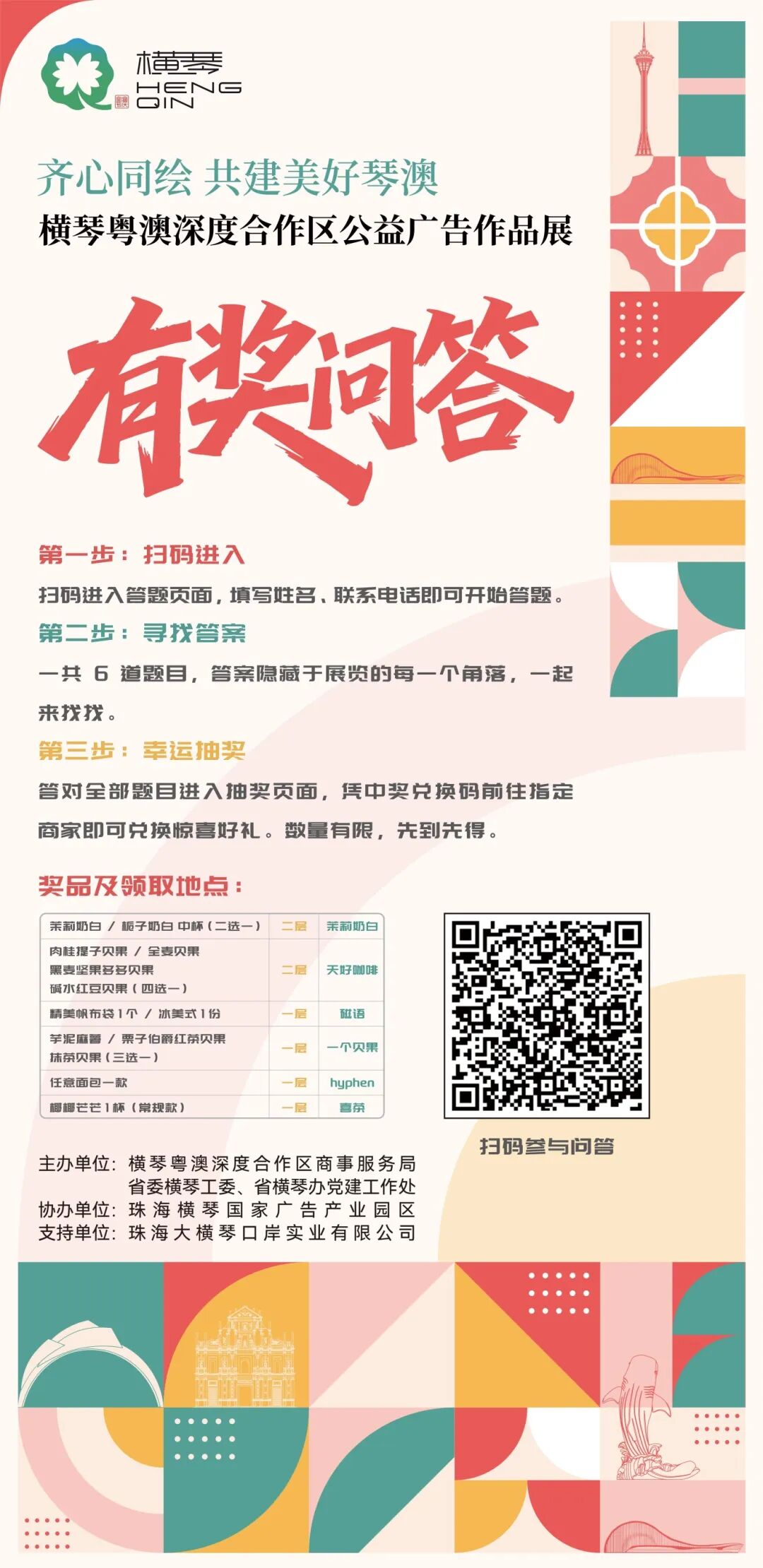 看展览打卡,还能解锁惊喜!横琴口岸·琴鸣广场负一层中庭准备了趣味有奖问答环节,挑战成功即有机会领取精美礼品。