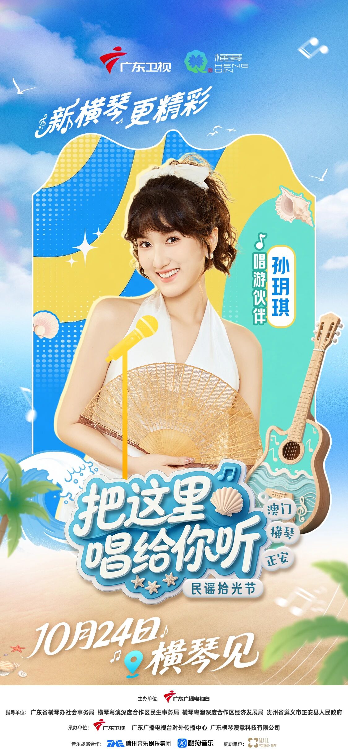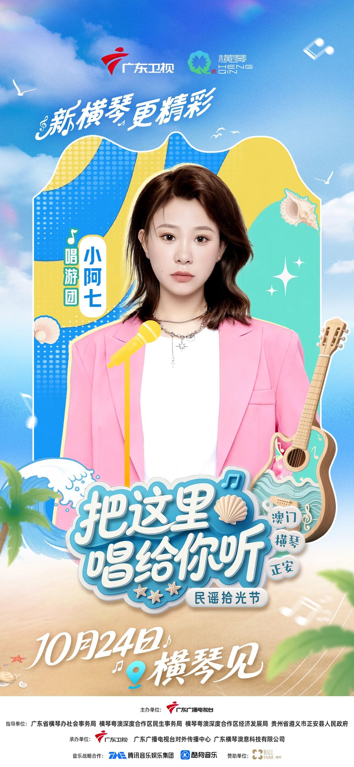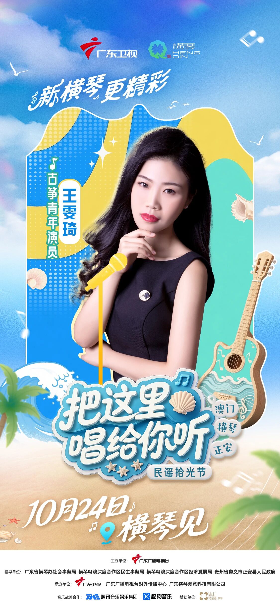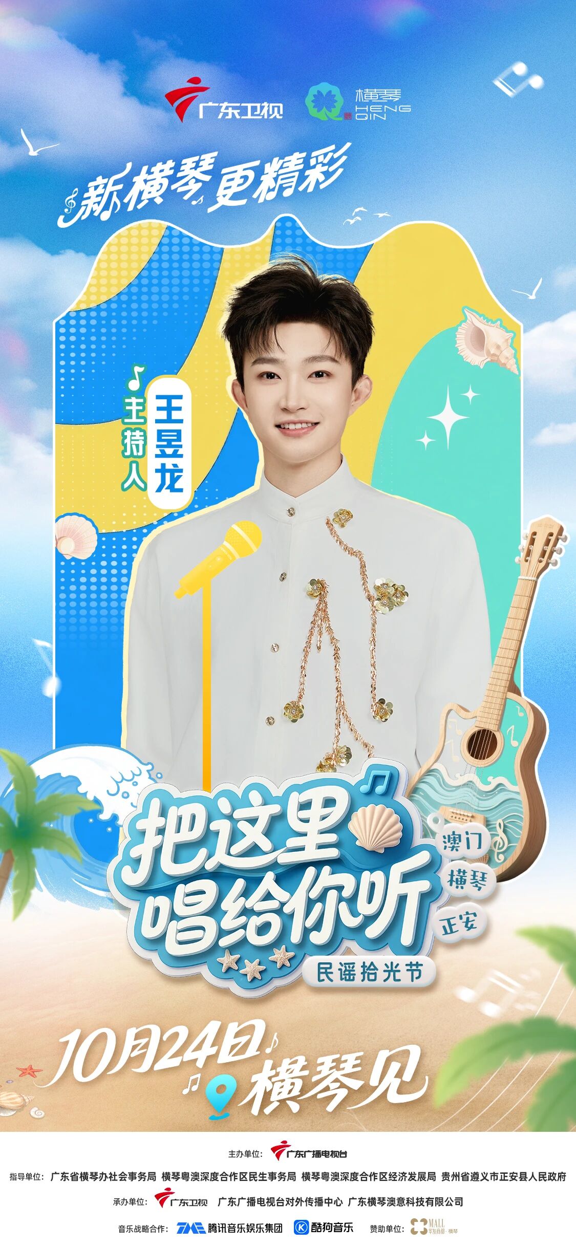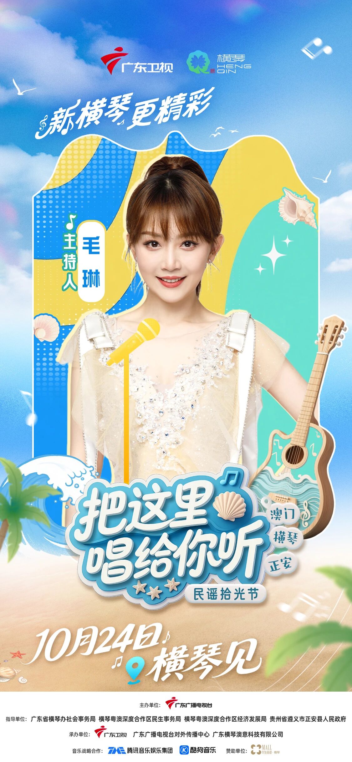 10月24日(周五),广东卫视《把这里唱给你听·民谣拾光节》将在横琴粤澳深度合作区开启收官录制,李振宁等国内外音乐人齐聚合作区,共谱山海民谣终章。