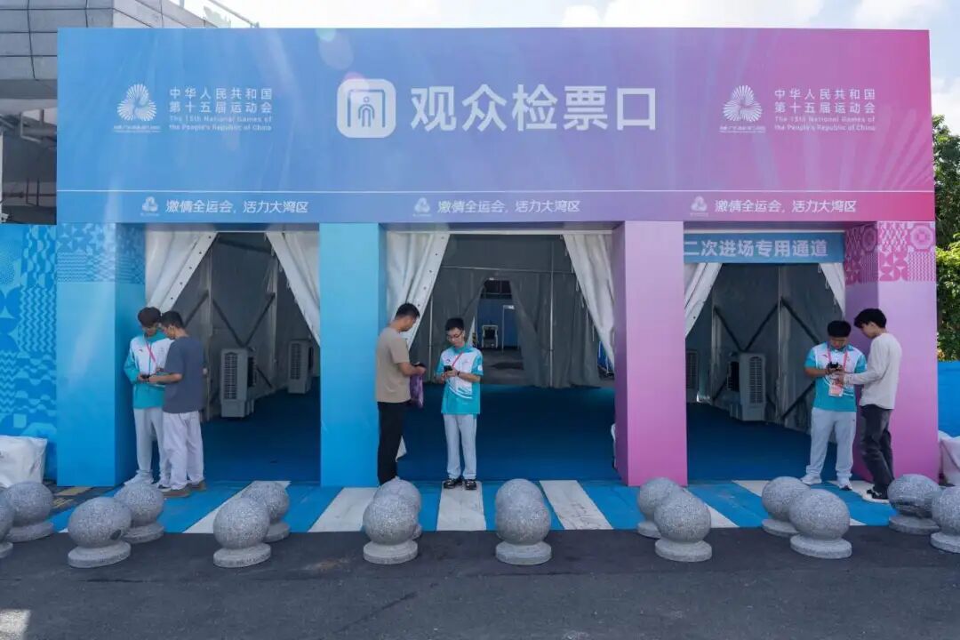 十五运会网球比赛门票分为电子票和纸质票,持电子票的观众需出示其电子票通过PDA设备核验门票;持纸质票的观众,由检票志愿者通过PDA扫描纸质票上的二维码完成校验,验证成功方可进入场馆,同时领取并佩戴手环。