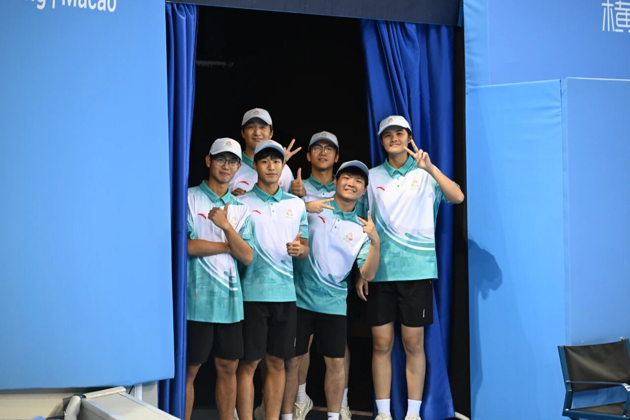 比赛现场,阵阵欢呼响彻横琴国际网球中心。当一颗颗凌空飞跃的荧光绿网球落地,人们的目光会不自觉地被一群身着蓝白色T恤的“小海豚”所吸引,他们就是保障赛事顺畅运转的球童,来自珠海科技学院体育科学学院的陈宇涵正是其中一员。