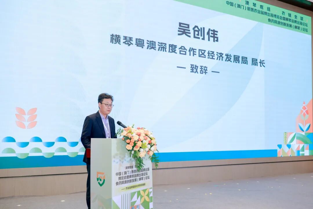 合作区经济发展局局长吴创伟致辞表示,本届博览会通过“一会展两地”的创新模式,澳门充分发挥“中葡平台”优势,为农产品出海提供国际化窗口,横琴依托政策创新,为企业提供全方位服务支撑,“品牌出海服务中心”的启动,将为企业开拓国际市场提供专业助力。