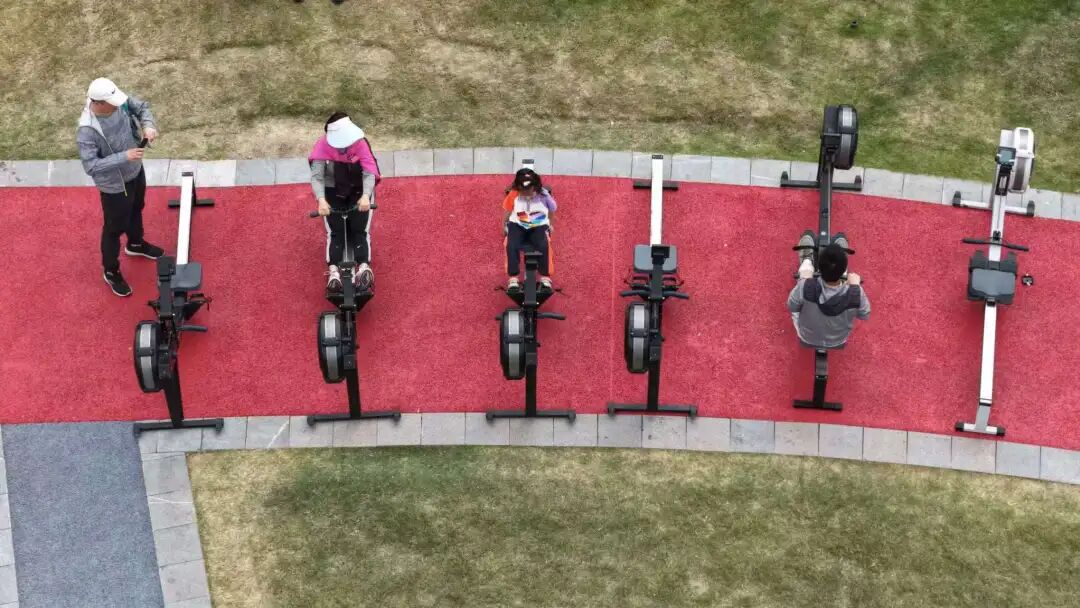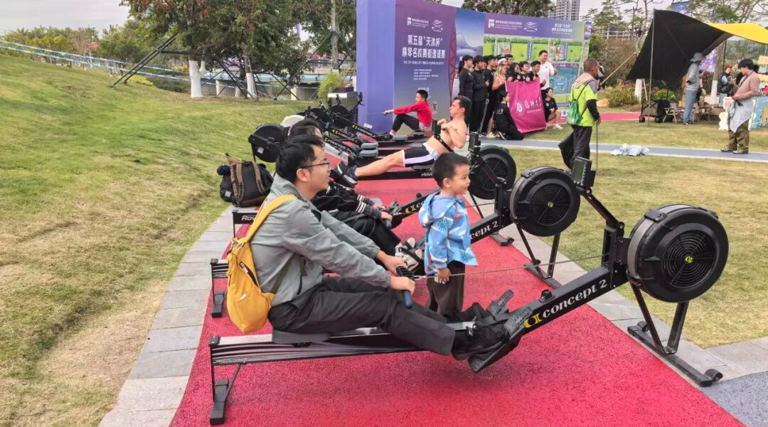 此外,随比赛同步开放的划船机体验区也备受欢迎。现场由专业教练免费提供教学,并进行体能测试,“无门槛”的参与难度让没有经验的“赛艇小白”也能亲自上手,感受赛艇运动的魅力。