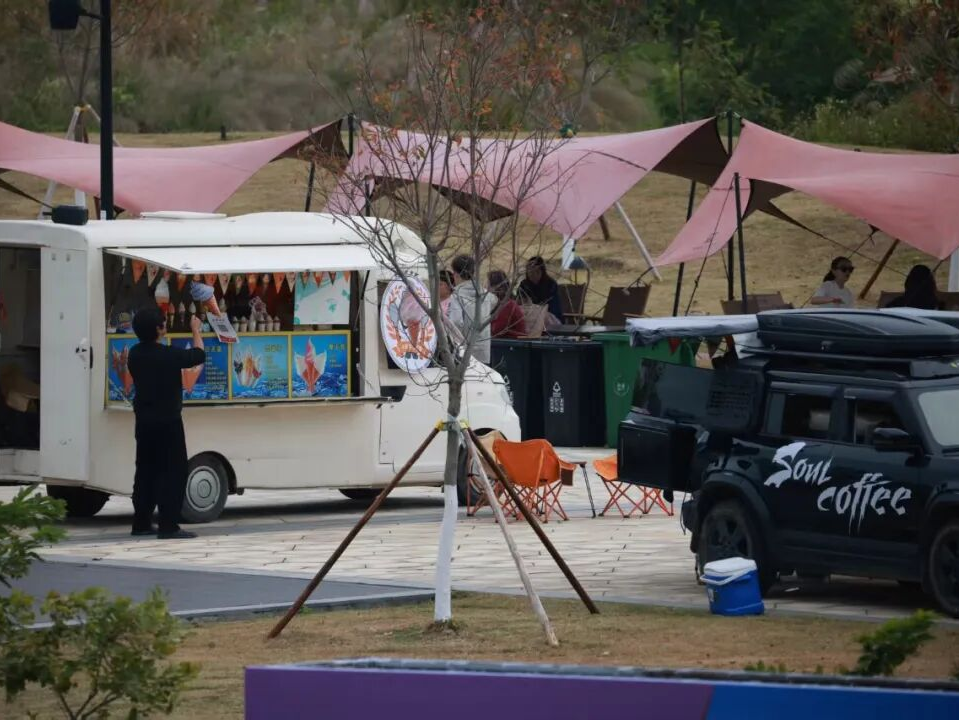 清风徐来,暖阳斜照,人们在横琴天沐河畔或席地而坐,或露营野餐,在观赏比赛的同时享受周末闲暇时光。卡斯会依托横琴赛艇公园的自然景观与赛艇赛事氛围,打造具有美国小加州休闲度假风格的露营活动区,为市民游客提供拍照打卡、露营野餐、观影娱乐等多元社交场景。