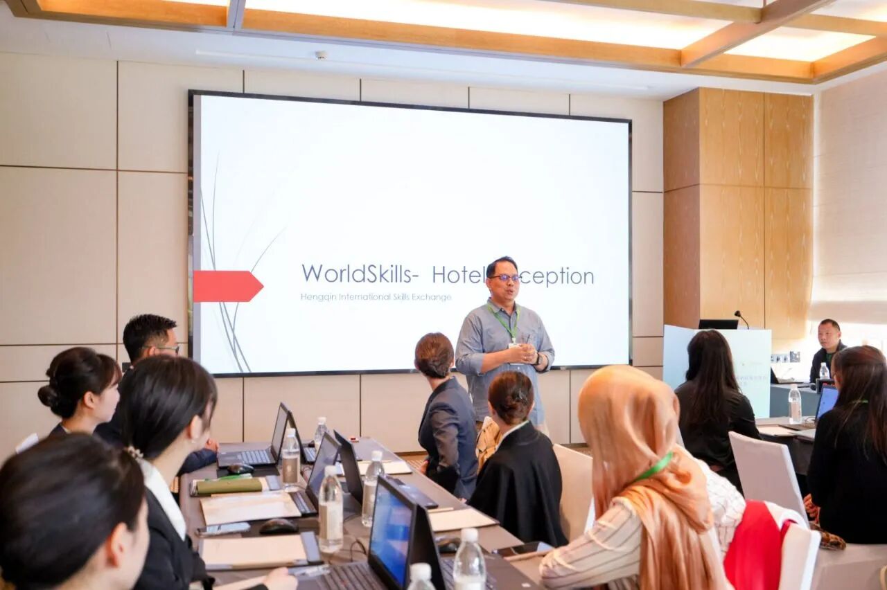 在为期近一周的密集交流中,参与者围绕世界技能大赛酒店接待项目的职业标准,通过模拟竞赛、角色扮演、系统操作、后台任务及专家讲座等多种形式,全面提升了在真实场景中的专业素养与实操能力。