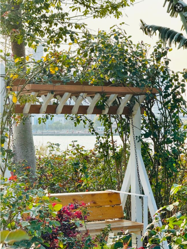 横琴花海长廊1号驿站是骑行最佳起点,也是观赏樱花木棉的最佳点位,更设有风车走廊与原木秋千,是轻松治愈的休憩空间。