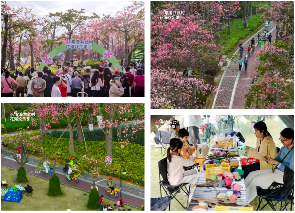 每年11月中旬至12月中旬,近10公里的横琴花海长廊4300余株樱花木棉绽放,沿线设有5个驿站,提供休憩、补给、租车及露营等服务,串联起骑行运动、生态观光与亲子休闲的微度假体验,让骑行不只于“骑”,更在于“停”与“享”。