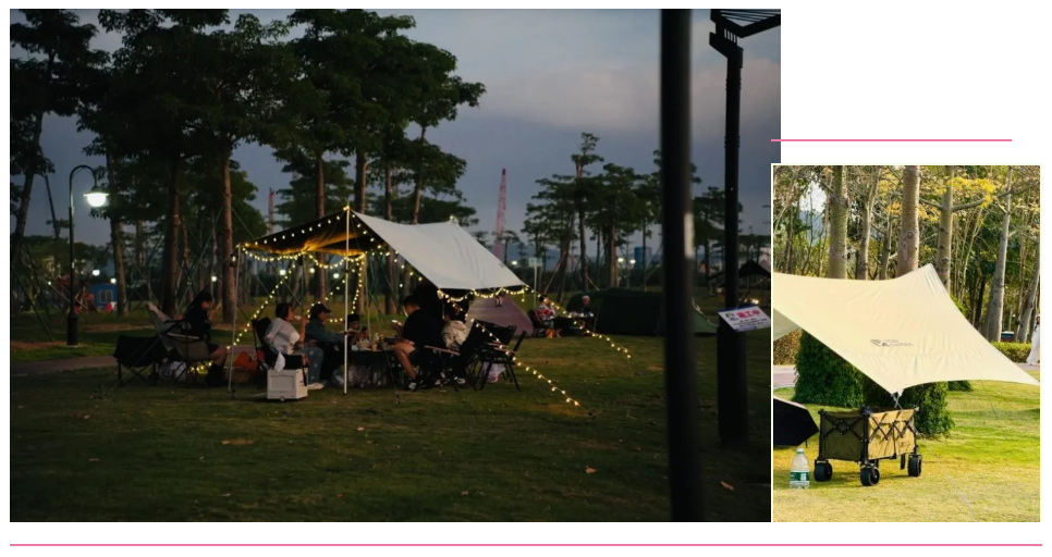横琴花海长廊5号驿站拥有开阔的露营草坪,是体验“轻露营”的热门选择。结束一天的骑行后,不妨在此听涛观星,别具诗意。近期昼夜温差较大,请备好外套及驱蚊用品哦。