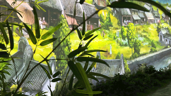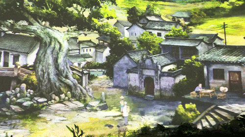 在4层能看到一幅53米长的动态百景图,在这面环幕中能窥见千年以前的生活景象,小人撑篙划船、妇人挑起水桶、孩童追逐嬉闹…笑声仿佛能穿透屏幕传来。