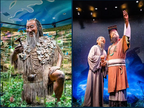 馆内的雕像都是用好莱坞级美术技术制作的,女娲娘娘、神农、黄帝…皮肤纹理、一缕发丝都极致逼真。