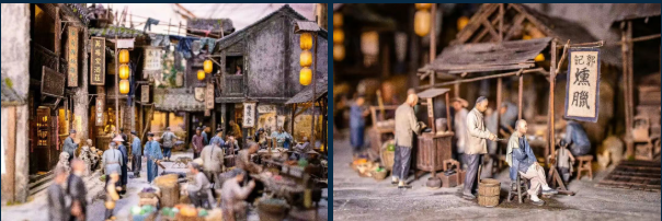 18世纪的广州码头变成微缩版,船舱、酒庄、理发店、烧腊铺…就连小猫小狗都100%还原,很值得花时间细细品味。