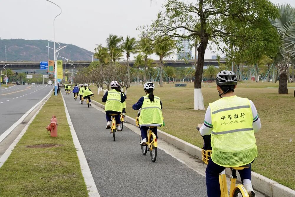 2025年3月18日,澳门教业中学学生从横琴国家湿地公园骑行出发