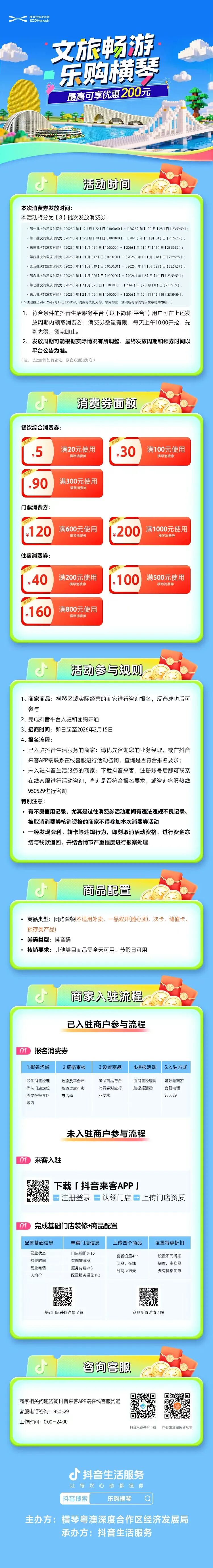 更多活动细则可通过抖音APP搜索“乐购横琴”查询,欢迎广大商户与消费者关注参与。