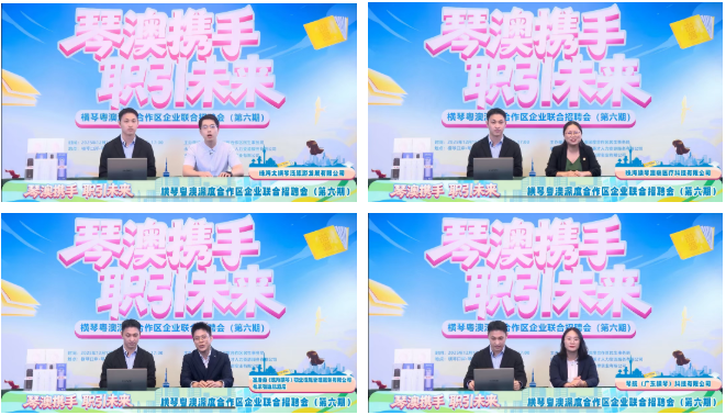 随后,珠海横琴澳瑞医疗科技有限公司、塞洛葡(珠海横琴)物业设施管理服务有限公司希尔顿逸林酒店等企业代表依次登场“带岗”,详细解读企业文化、岗位发展路径与人才需求,并实时解答观众提问,整场直播累计吸引超3.2万人次在线观看,互动氛围热烈。