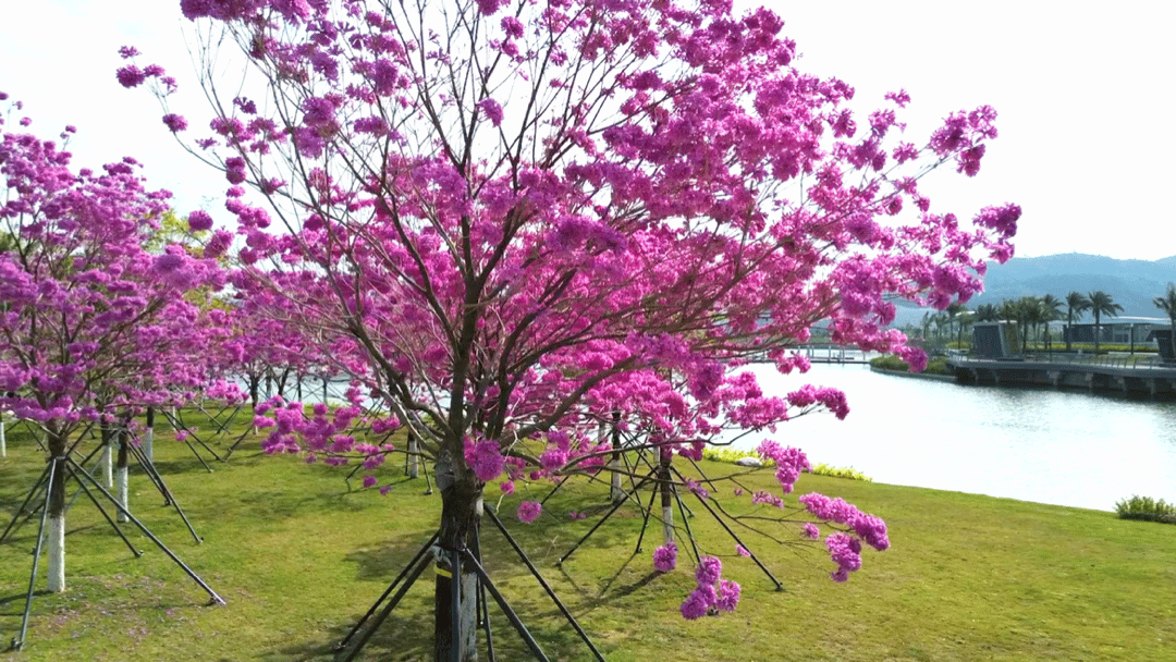 找个好天气,约上闺蜜、带上家人,去横琴天沐河,和紫花风铃来一场温柔邂逅吧。