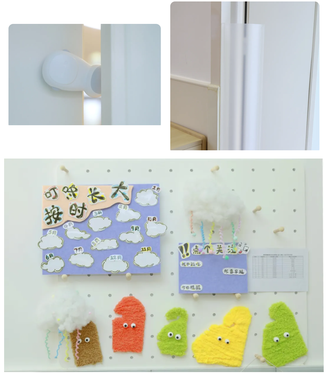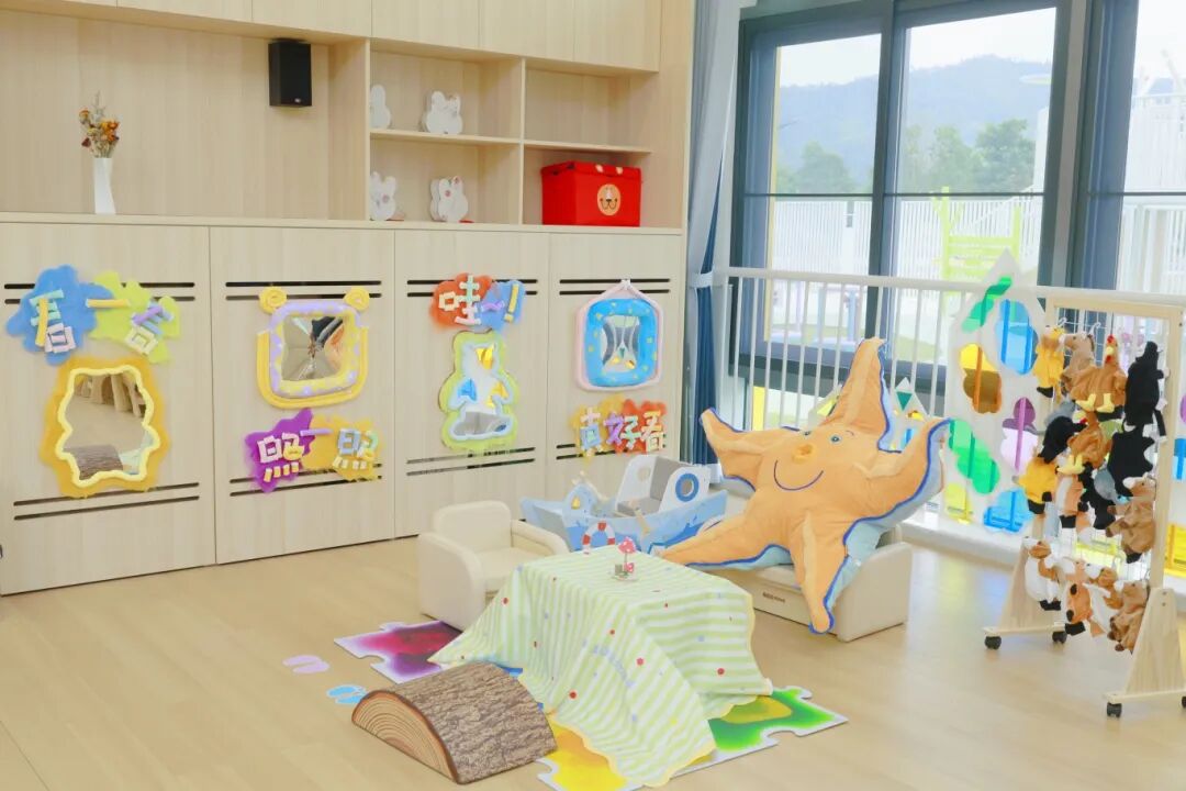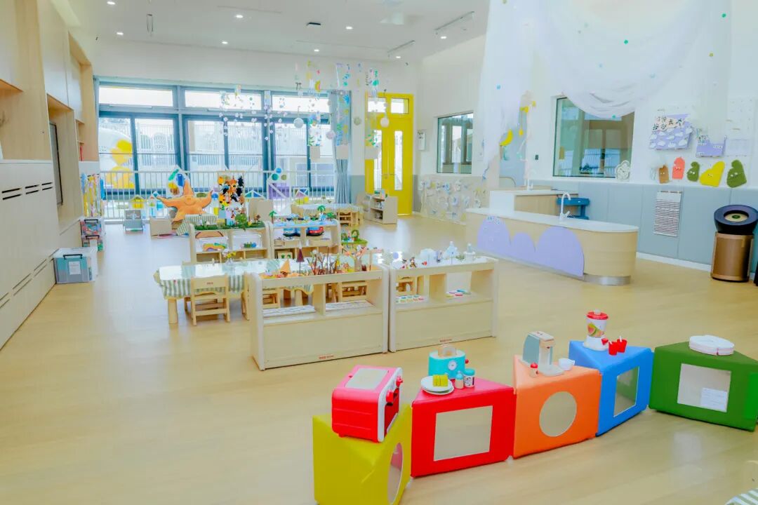 托班课室内所有家具均进行圆角处理,低矮窗户加装安全护栏,使用安全环保的软包墙面及防夹手防护措施,为幼儿的自由探索构筑坚实的安全屏障。