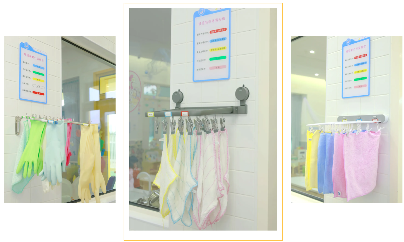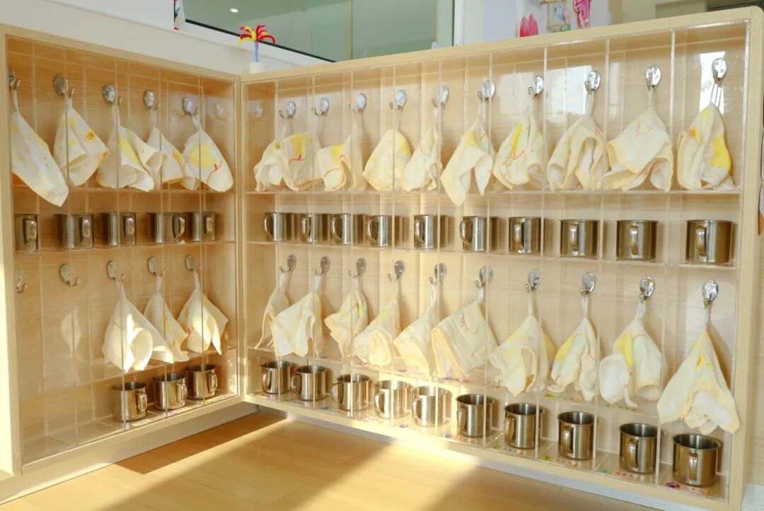 按《托儿所幼儿园卫生保健工作规范》《托育机构卫生评价基本标准(试行)》等文件标准执行。贴心设有符合婴幼儿尺寸的独立盥洗设施,每日严格执行“清—消—清”的消毒流程,确保餐具、玩具、寝具定期消毒。每班配备空气净化器,保障室内空气清新。