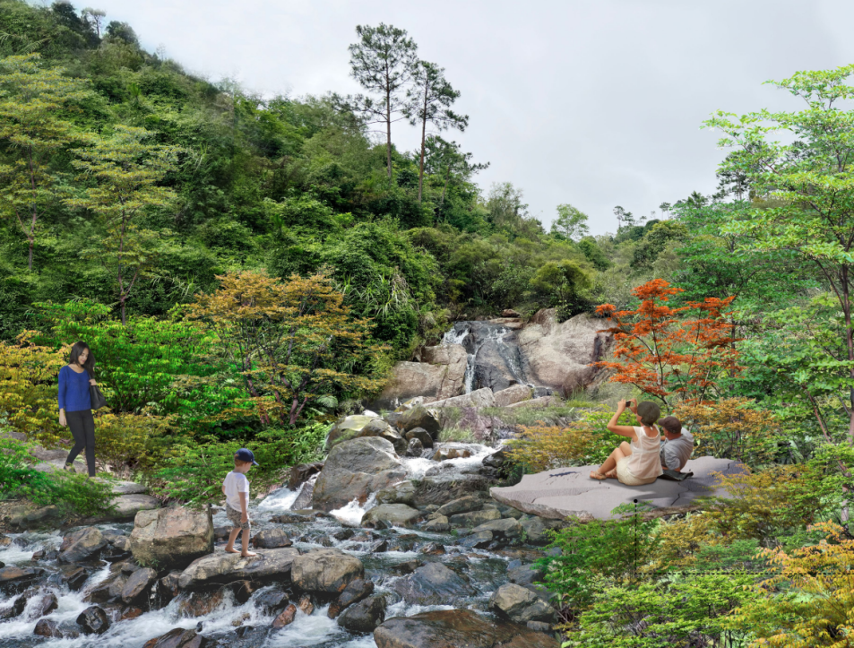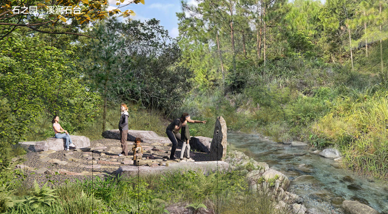 在石之园,将恢复自然溪流景观,调整周边植物生境,嵌入供市民游客休憩的场地。