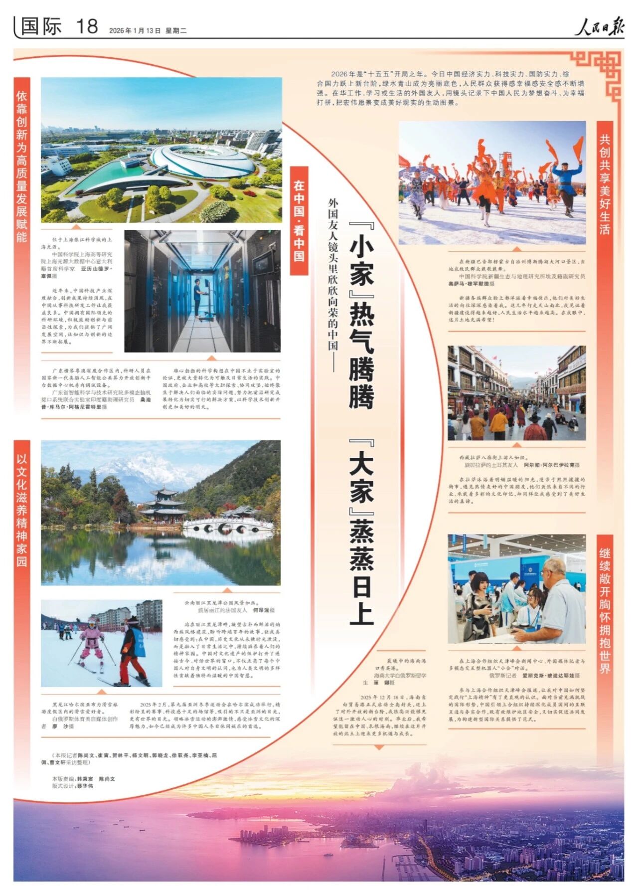 2026年是“十五五”开局之年。今日中国经济实力、科技实力、国防实力、综合国力跃上新台阶,绿水青山成为亮丽底色,人民群众获得感幸福感安全感不断增强。在华工作、学习或生活的外国友人,用镜头记录下中国人民为梦想奋斗、为幸福打拼,把宏伟愿景变成美好现实的生动图景。