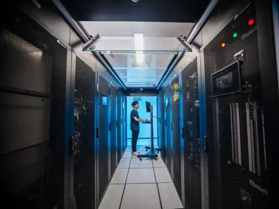 广东横琴粤澳深度合作区内,科研人员在国家新一代类脑人工智能公共算力开放创新平台数据中心机房内调试设备。广东省智能科学与技术研究院多模态脑机接口系统联合实验室印度籍助理研究员 桑迪普·库马尔·阿格尼霍特里(SANDEEP KUMAR AGNIHOTRI)摄