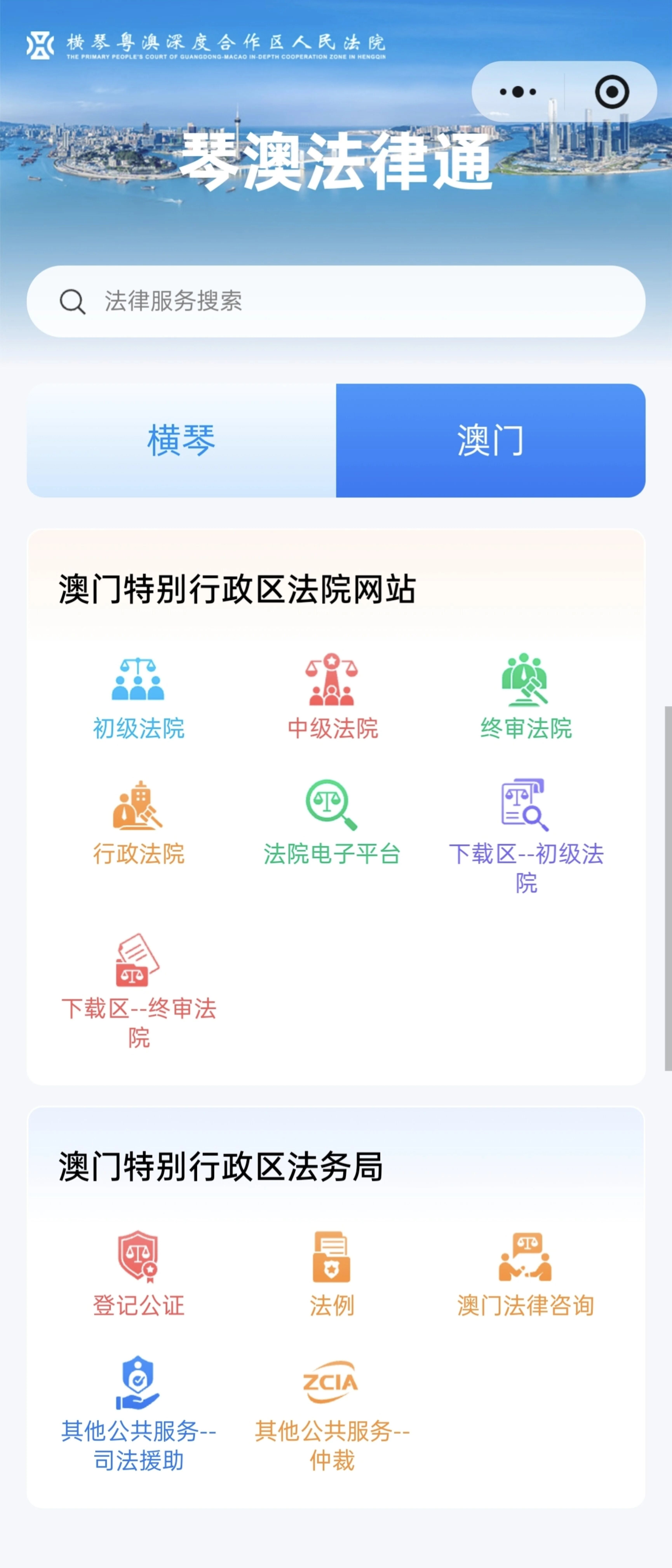 “琴澳法律通”小程序上线。该平台采用“横琴+澳门”双板块架构,实现跨境法律服务深度融合!