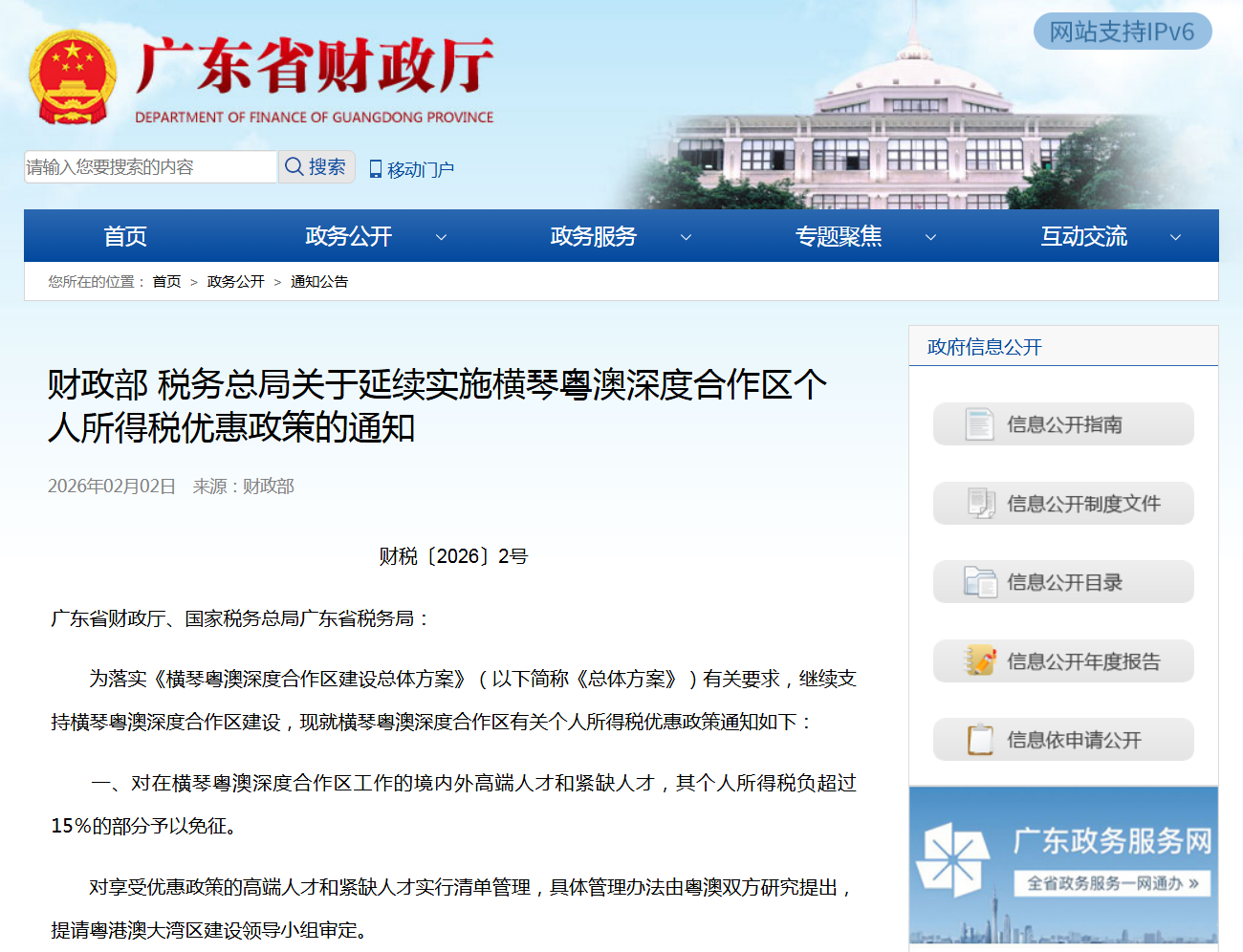 近日,财政部、税务总局印发关于延续实施横琴粤澳深度合作区个人所得税优惠政策的通知。
