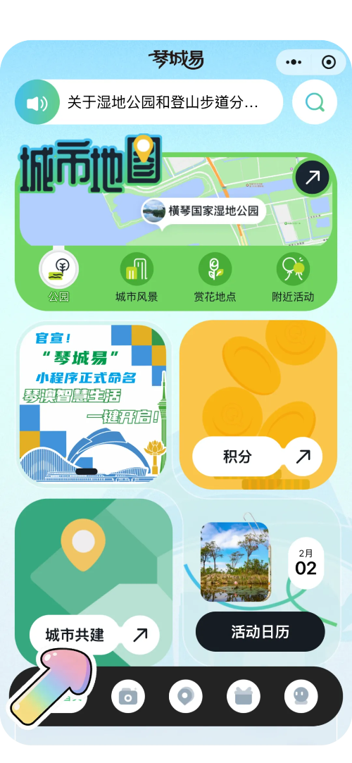 打开“琴城易”小程序,将在横琴生活中所见的市政问题随手拍、随时报,让城市服务触手可及,让横琴更整洁、更明亮、更宜居!