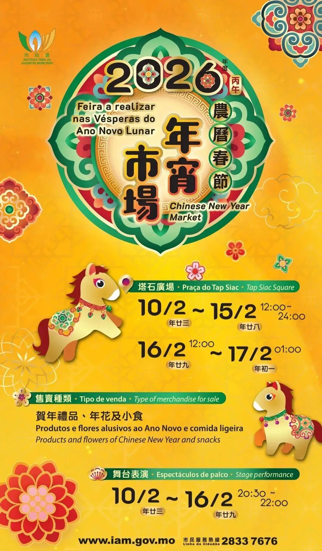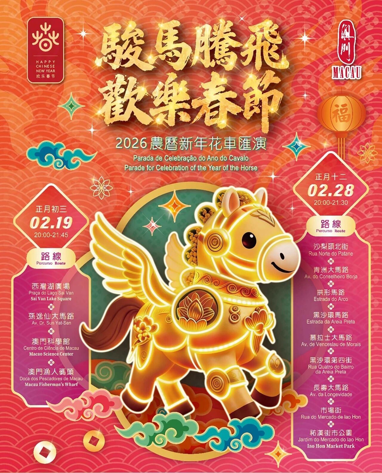 有关完整节目表,请查阅官网:https://www.macaotourism.gov.mo/zh-hans/article/cny/parade-2026