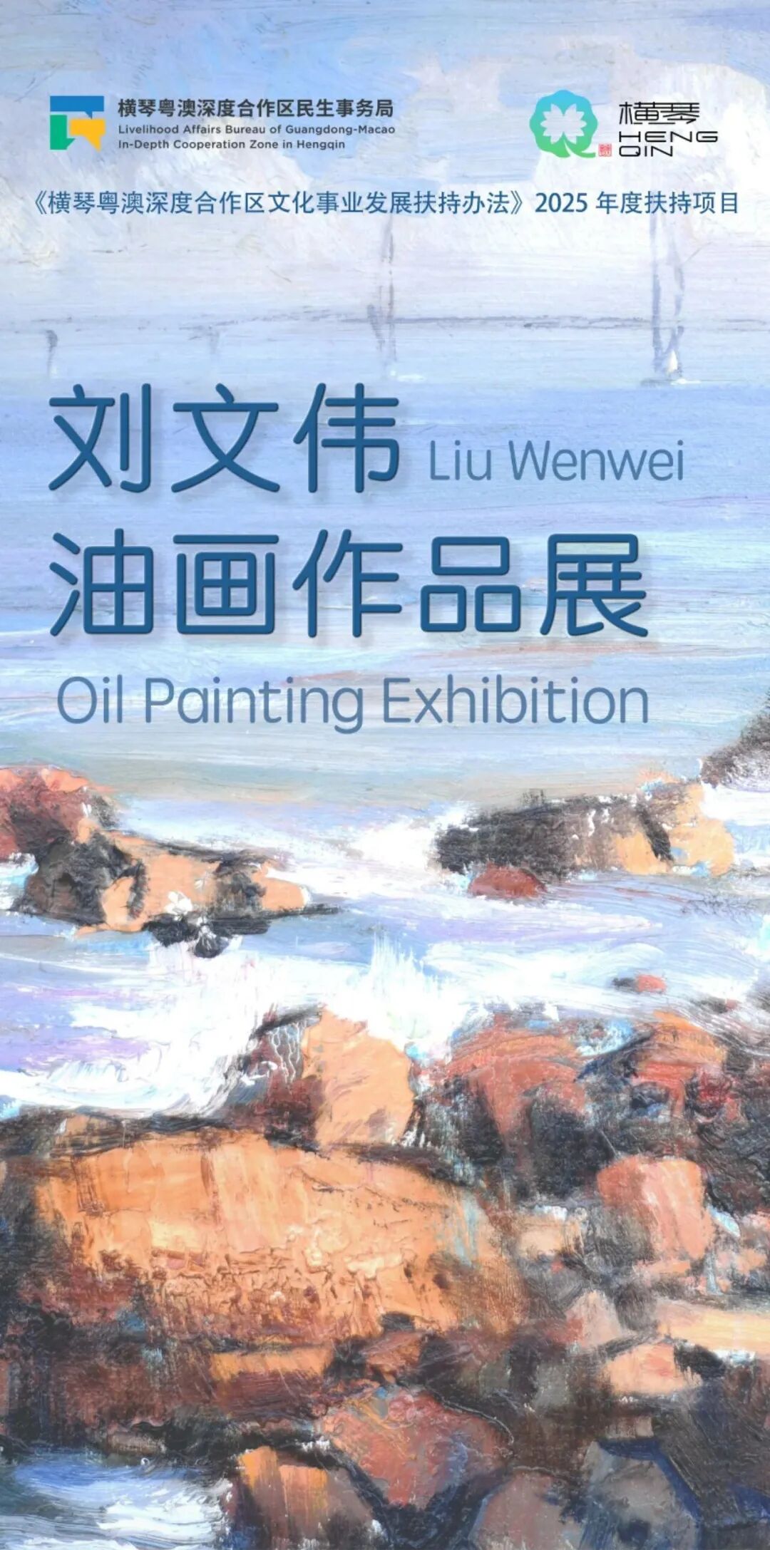 2月1日,刘文伟油画作品展在横琴粤澳深度合作区山海美术馆正式揭幕,该展览为《横琴粤澳深度合作区文化事业发展扶持办法》2025 年度扶持项目。