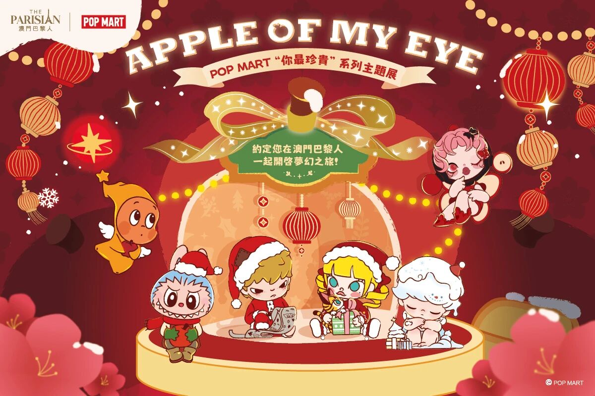 POP MART六大超人气角色来到澳门巴黎人,带来“你最珍贵”主题展。“苹果”在中文中寓意平平安安;英文说法“你是我眼中的苹果”则代表着“你最珍贵”。这次的主题展除了有遍布度假村每一角落的主题布置与打卡装置,还有特别推出的苹果主题小食及甜品和节日餐单,以及精品、节日礼品等。