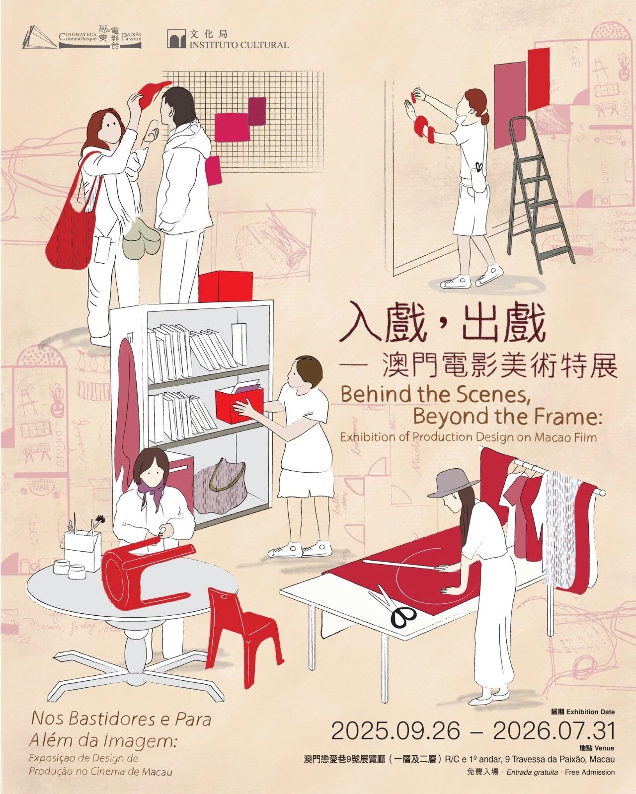 展览以美术主创的视角,重访三部近年备受瞩目的澳门电影—《那一年,我17》(2016)、《海鸥来过的房间》(2022)及《来世还作人》(2023),揭示镜头画面背后的巧思与匠心。通过五位参展本地美术主创:郑敏静、罗宝宜、李晞晴、黄芷珺及姚露欣的设计笔记、电影道具,以及特别全新录制的访谈,邀请观众一探澳门电影视觉叙事的幕后奥秘。