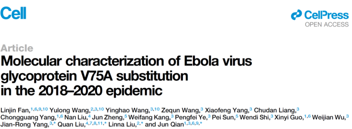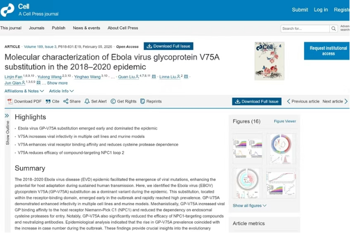 横琴实验室首篇Cell,刘全教授团队联合揭示埃博拉病毒关键突变。