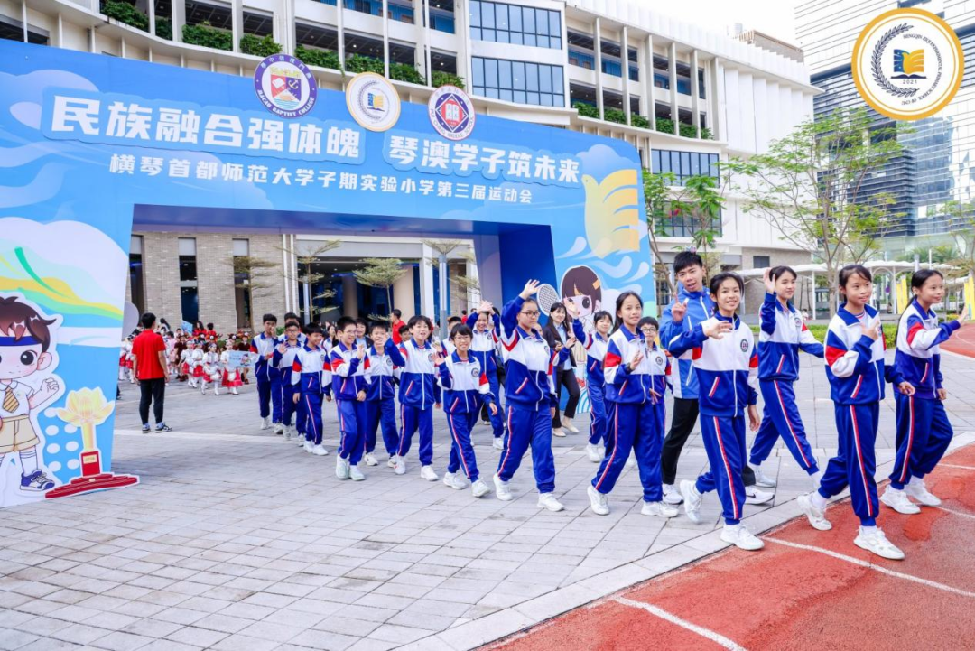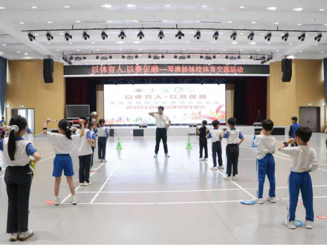 2024年11月18日,横琴子期小学第三届运动会上,200多位澳门师生参与其中。开幕式上,56名身着各民族服饰的学生簇拥五星红旗前行,横琴子期小学、澳门浸信中学和澳门培正中学的学生代表共同领唱《歌唱祖国》。澳门培正中学学生还带来了融合葡萄牙土风舞的表演。两地学子同场竞技,在运动中增进友谊,成为琴澳教育融合的生动实践。