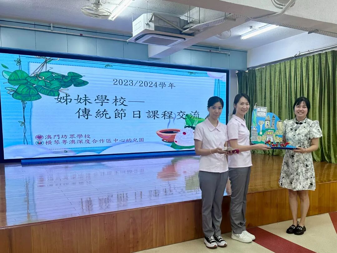 横琴中心幼儿园与澳门姊妹园——澳门坊众学校幼稚园,历时两年开展传统节日课程共建课题,创新提出四种课程探究模式(CC-活动体验、CC-主题教学、CC-项目式学习(PBL)及CC-STEAM探究),将传统节日与现代教育理念结合。2025年端午节期间,两地幼儿还线上联动,同步开展包粽子、制作中草药香囊等活动,实现文化传承与科学探究的有机融合,既增强幼儿文化自信,也促进教师专业成长。