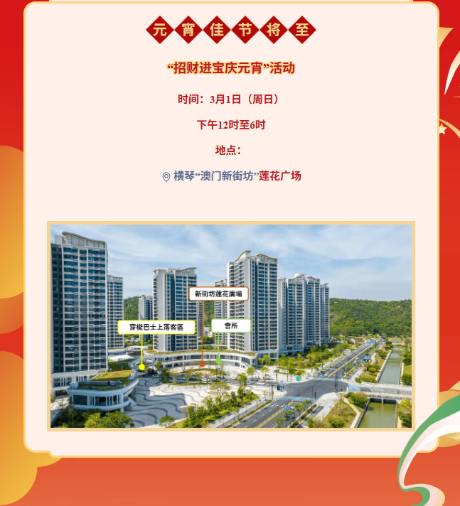 诚邀市民携同亲友,亲临澳门新街坊一起欢度节日。