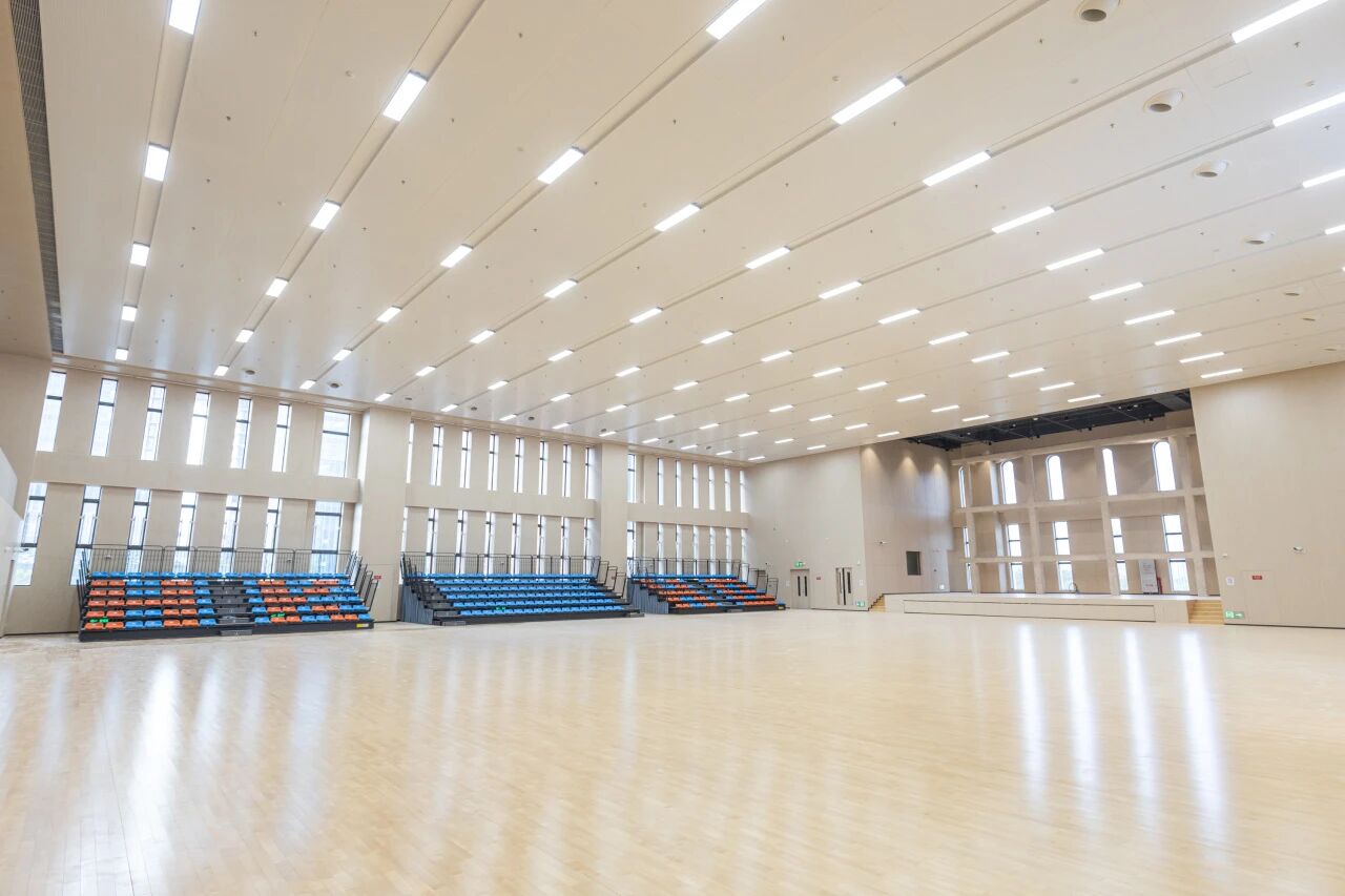 中学延续幼儿园和小学校舍的古典端庄欧式建筑风格,并巧妙运用地形特点,采用向北侧山体打开的布局,使校园空间感更广阔,打造“融景入园”、绿意盎然的优质校园,让莘莘学子在优美环境中学习成长。