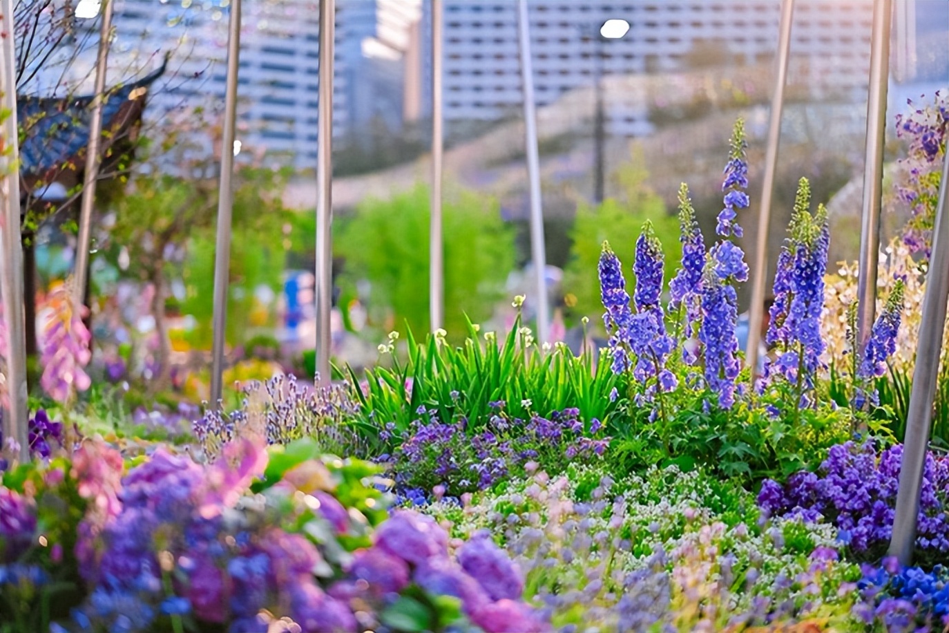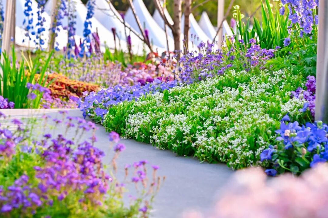 横琴展园以花木为媒,诉说粤澳情谊,以紫、粉、蓝为主色调的多种植被,在此交融共生,绘就湾区和谐画卷。