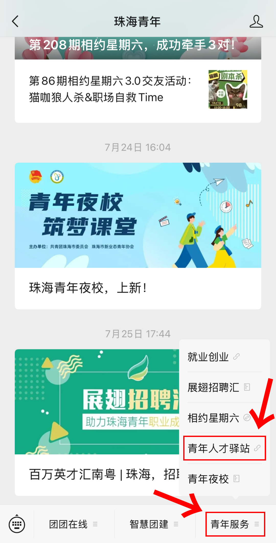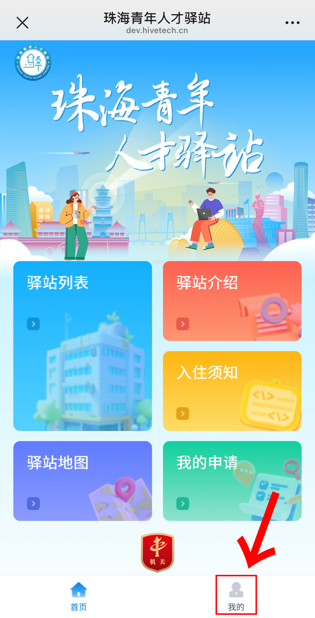 进入“珠海青年”微信公众号;下方菜单栏依次点击“青年服务”-“青年人才驿站”-“我的”,输入账号和密码进行登录。